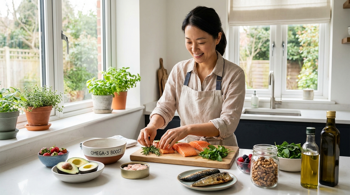 연어, 고등어, 참치 같은 등 푸른 생선에 풍부한 오메가-3 지방산은 관절 염증을 잡는 데 정말 효과적이에요.